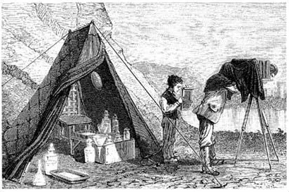이스트먼이 24세가 되었을때 산토도밍고로 휴가를 계획한다. 직장동료가 그에게 여행 기록을 남기자고 제안했고 그는 습식판 시절 모든 용품을 갖춘 사진 장비를 구입했다. 그당시 카메라가 전자레인지 만큼 커서 무거운 삼각대가 필요했고 사진을 찍기 전에 유리판(예전 필름)에 사진용 에멀전을 바르고 빛에 노출된 유리판이 마르기전에 현상해야 했기 때문에 텐트를 들고 다녀야 했다. 텐트에 사진을 찍고 현상하는데 필요한 화학약품, 유리탱크, 무거운 접시받침대, 물이 담긴 항아리를 보관했다. 완전한 장비는 말에 싣고 다녀야할 정도의 짐이었다. 그리고 사진을 찍는 법을 배우는 데도 5$나 필요했다.